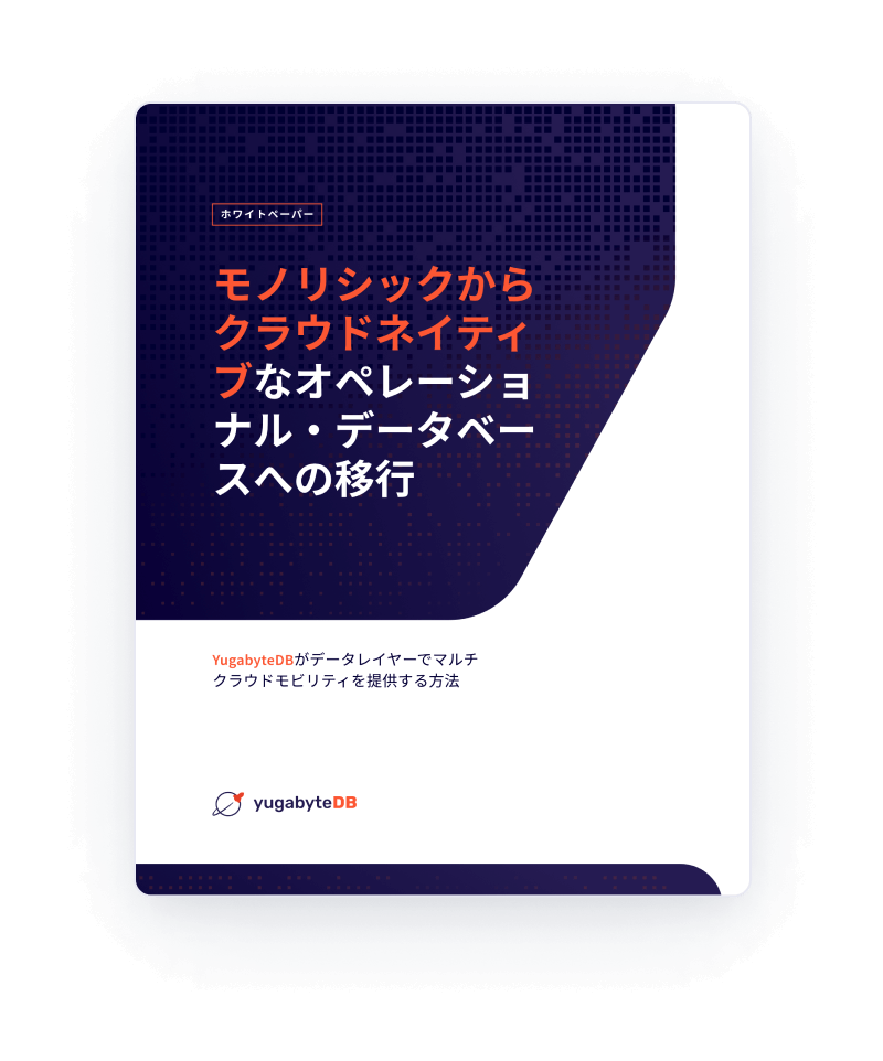 オペレーショナル・データベースの進化から、NoSQLデータベースの課題、分散SQLによる課題の解決、YugabayteDBのクラウドネイティブなデータベースについて記載されています。