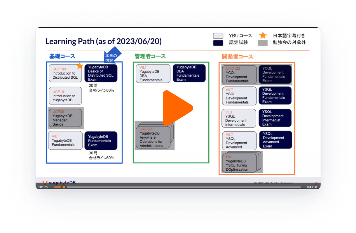 Yugabyte DBの資格取得を目指す勉強会のアーカイブ動画を無料で公開しています